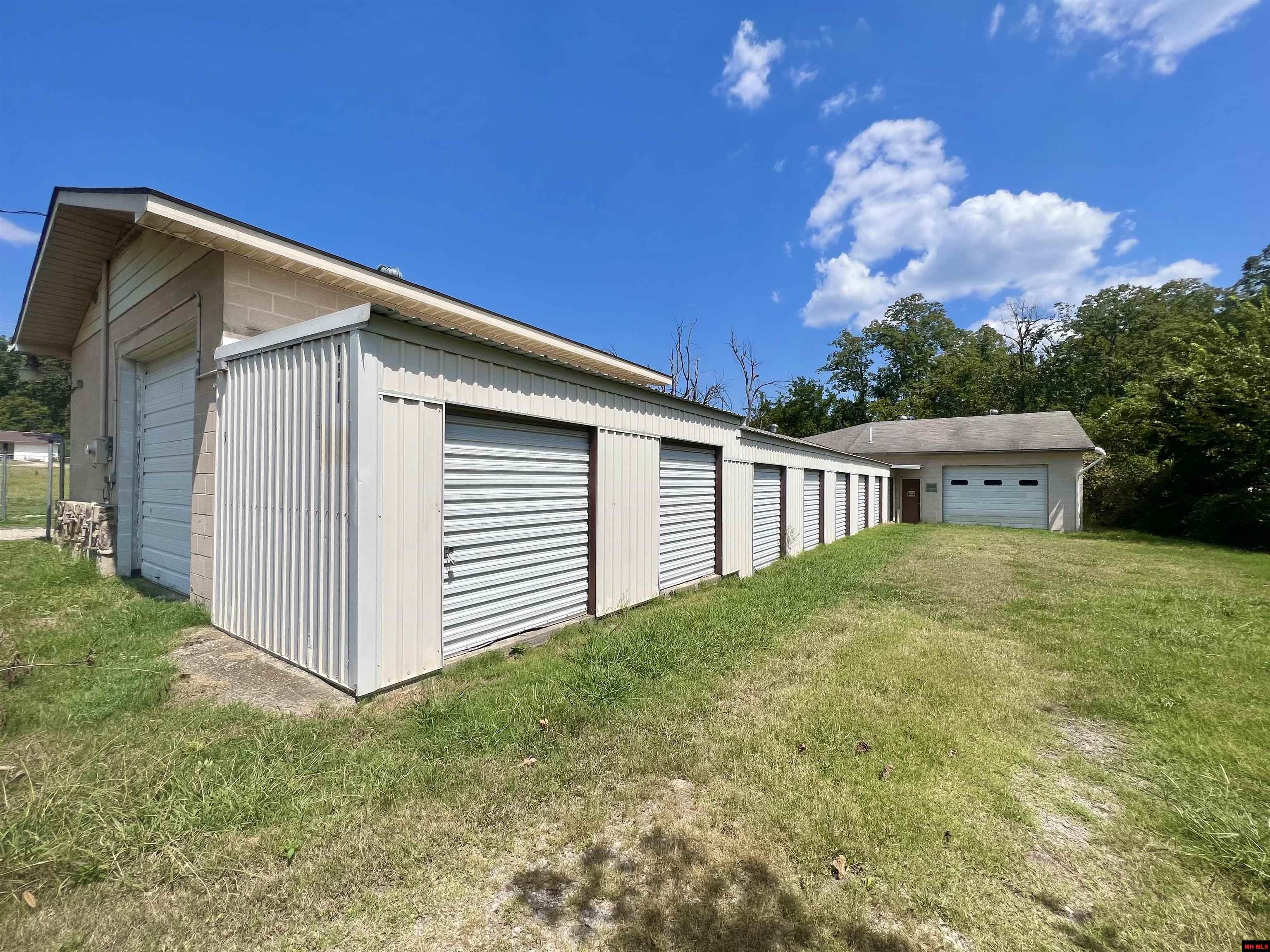 Take advantage of this versatile property located off the intersection of HWY 5 & HWY 178 between Bull Shoals and Norfork Lakes. Six 12x24 storage units, eight 10x20 storage units, two spacious attached shops each with a restroom and a large overhead door. The spacious front lot is partially fenced, ready for a gate installation, making it ideal for boat and RV storage. The property includes a small building with highway frontage that could be converted back into a home, used for extra storage, or used as a small commercial venture. This is a great investment property; you can't build for this price!