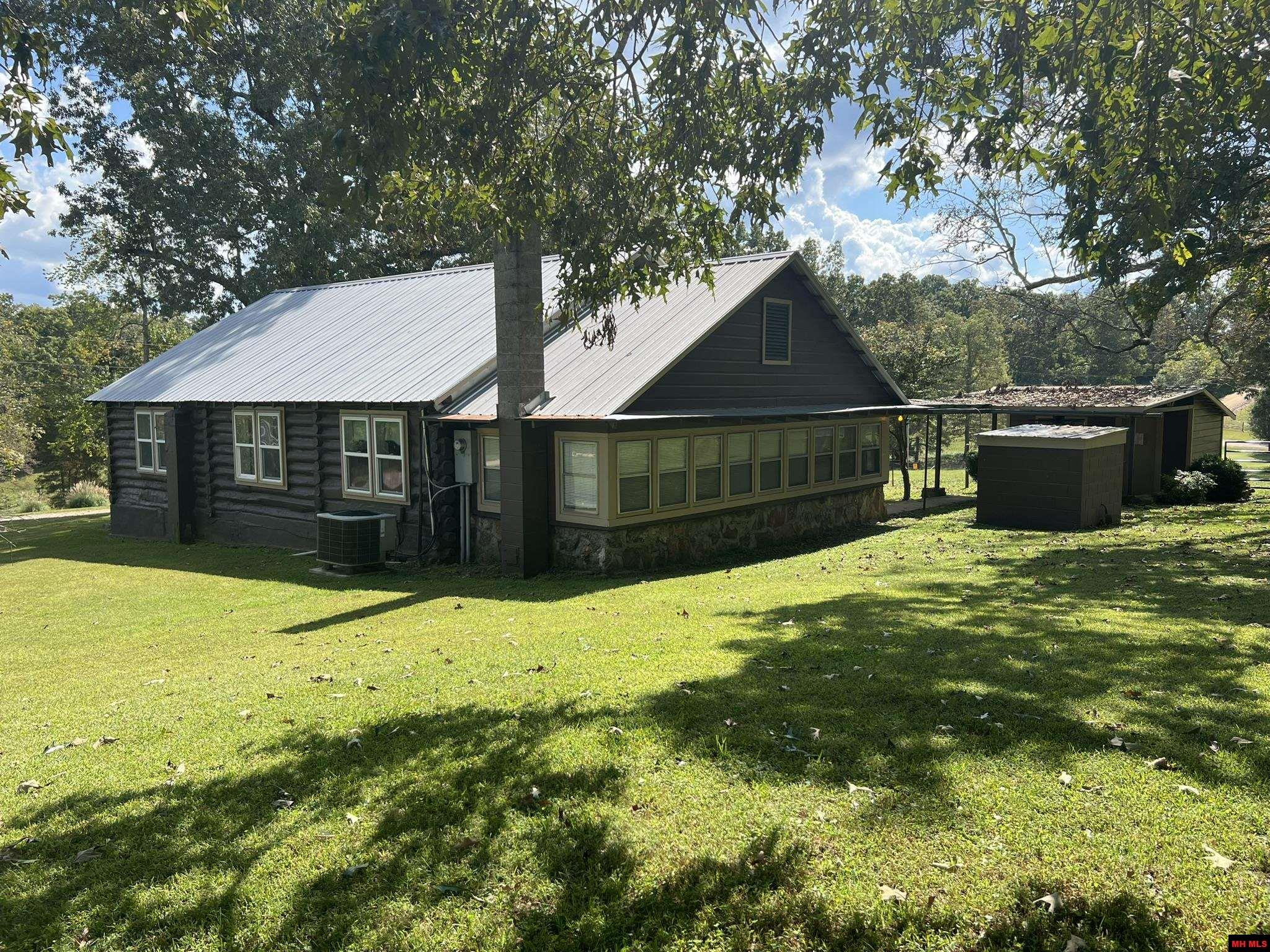 Log Cabin/Metal Roof has Shaded Pasture w/pond. 3-bedroom log cabin with a metal roof extensive remodel. Galley style kitchen includes refrigerator, glass top range, microwave and exhaust fan. Open living and dining area leave the cabin feeling larger than the 972 sq ft it is. Full bath with separate tub and walk-in shower. Utility room includes, washer/dryer unit and built-in shelving. Fresh paint and flooring throughout. Electric Heat Pump central HAVC. Covered front porch, 14x27 carport, 14x14 covered patio, 10x14 storage building. 6 perimeter fenced AC M/L with pond and auto-waterer is rolling park-like pasture shaded by scattered heritage size Oak trees, great for your livestock.