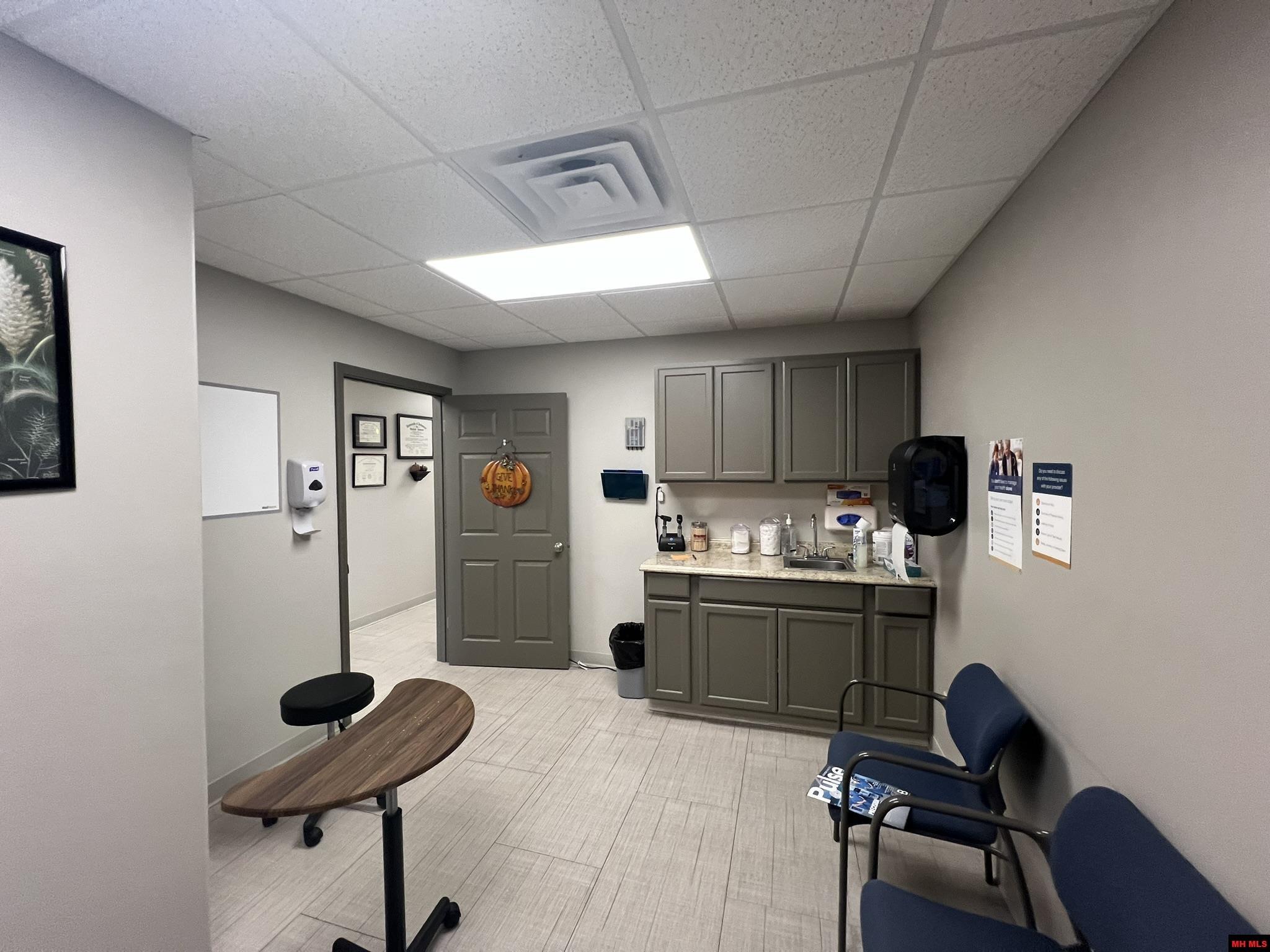 Commercial Building with 3 year lease. This 2054 finished main floor square foot building sits over a full unfinished basement. Currently leased out as a medical clinic. With a new rubber roof in 2021 the main floor of the building had been renovated by the medical clinic circa 2020. There is a welcoming waiting area with a half bath, receptionist room, employee half bath, lab room, 3 exam rooms, provider office and a large back room serving as an office and breakroom with additional equipment storage.