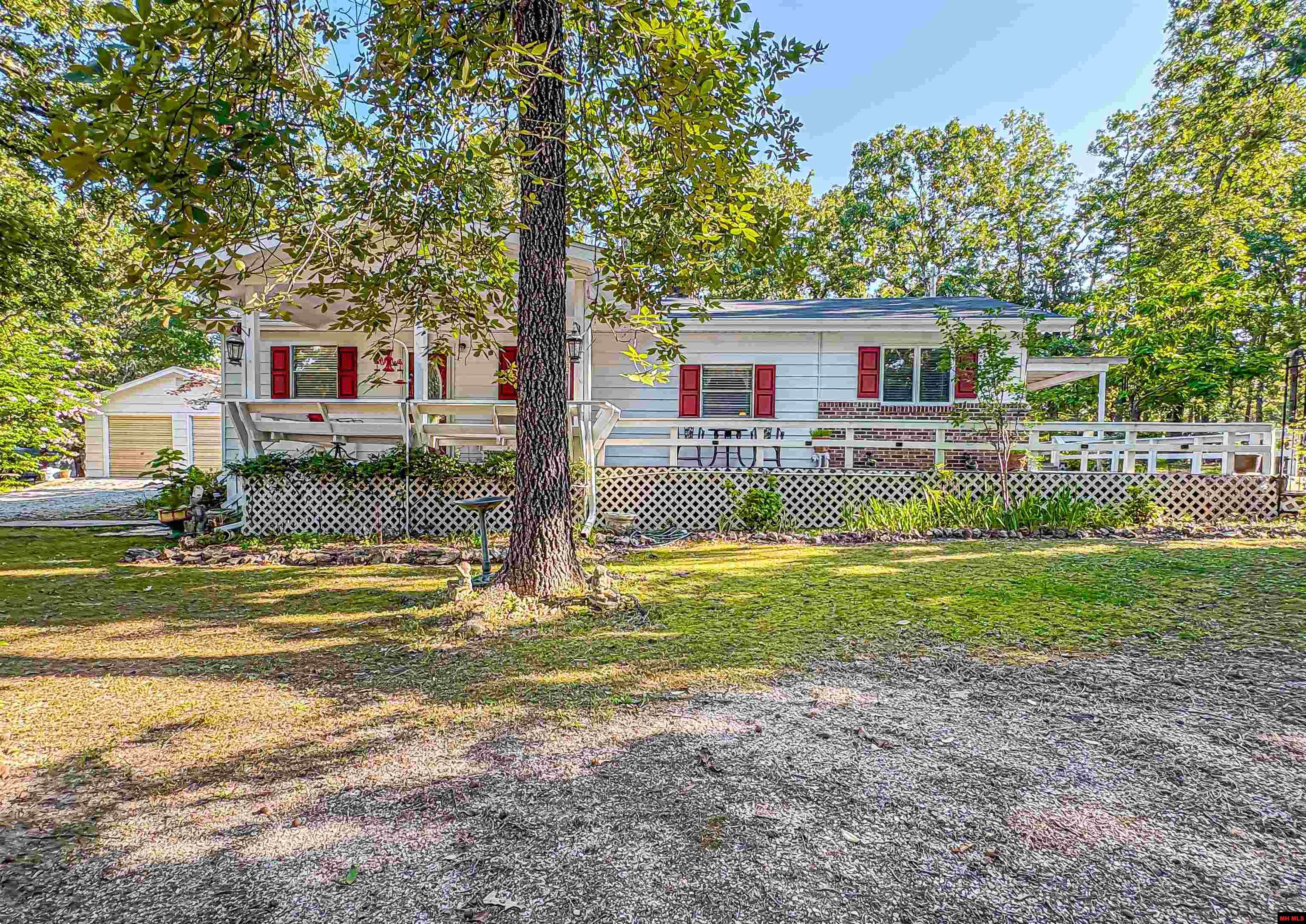 Here is a well maintained home on just under 2 level acres m/l with large mature trees. This 1900 SF 3 bedroom, 2 bath home has an oversized living room, 2 car detached garage, a large amount of deck space to enjoy the outdoors, and a utility room. Also located on the property are an additional well and septic for another house or camper. Close access to Norfork lake.