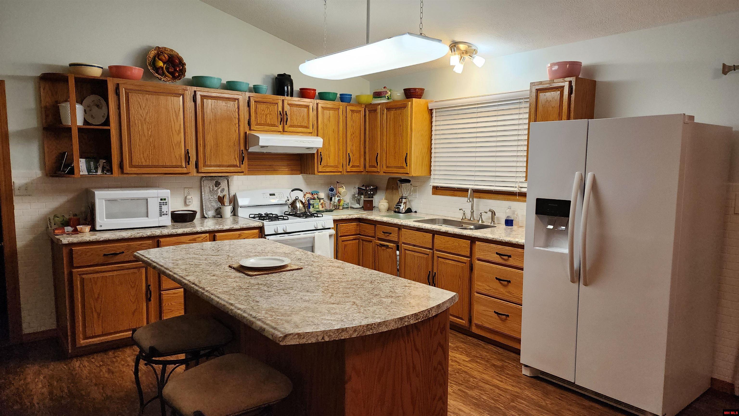 A great home in the McDonald Meadows subdivision in Bull Shoals, with seasonal views of the lake! Sitting on a .96 acre m/l ot this two-bedroom, two-bathroom features an open floor plan with vaulted ceilings, perfect for comfortable living and entertaining. Kitchen has oak cabinets with pullouts, while the spacious main areas have durable laminate flooring for easy upkeep. The family room offers a cozy retreat, highlighted by beautiful hardwood floors and a gas insert fireplace and plenty of windows to enjoy the outdoor views. Enjoy seasonal views of Bull Shoals Lake from the inviting front deck or unwind on the back deck with a fenced backyard that’s perfect for pets. Other amenities include a large laundry room, a shop, and a storage room in the basement, along with a reliable 2011 HVAC 20.5 seer Trane system and a new roof installed in 2018. This property combines the convenience of the city with a peaceful country feel. Don’t miss your chance to own this piece of paradise!
