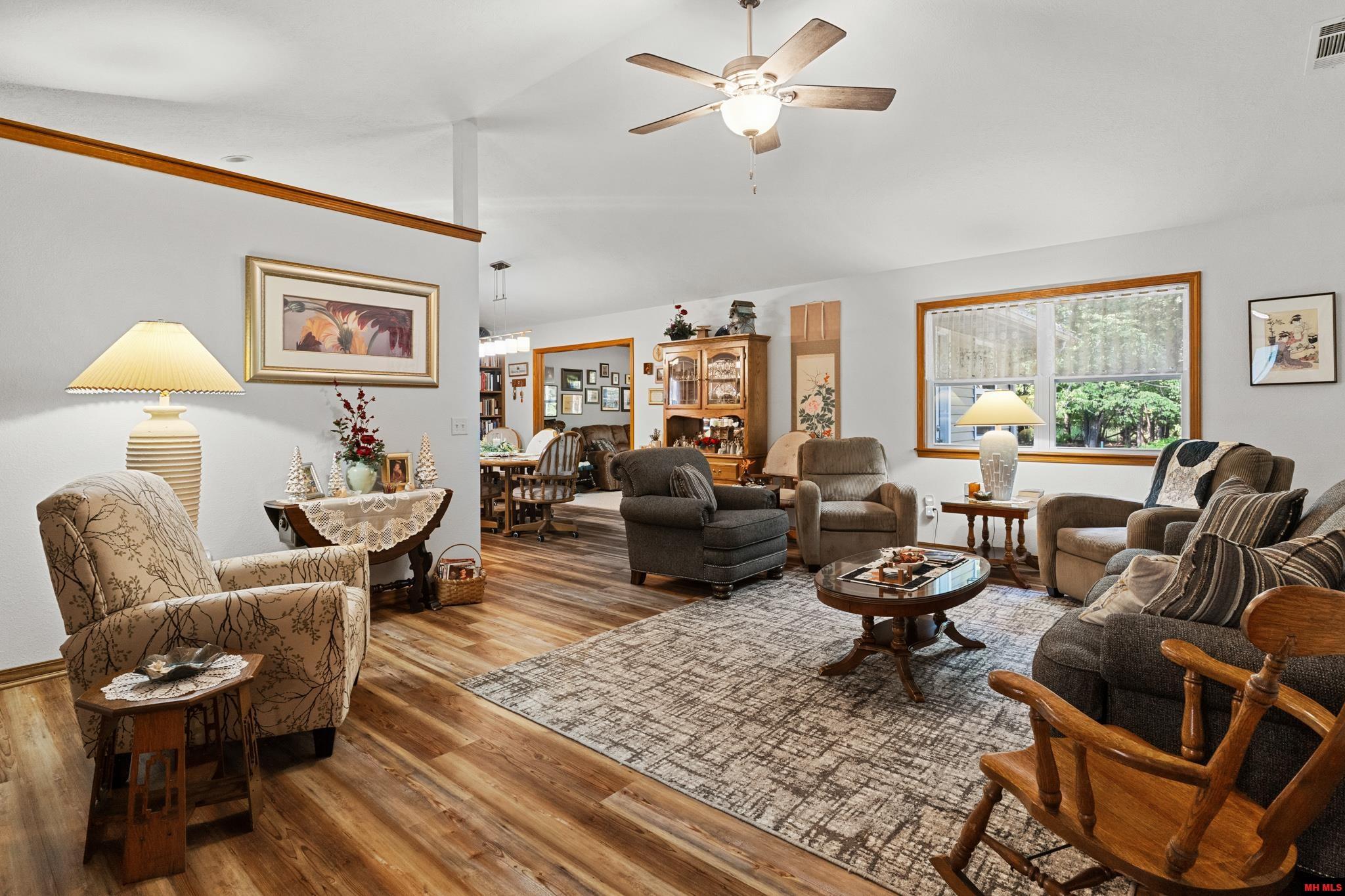 This well maintained 2019-built home is on a level 3.45-acres m/l. 3-bedroom, 2-bath offers a spacious layout with large hallways, wide doorways, and a walk-in shower, making it ideal for those seeking handicap accessibility. The home features foam-insulated walls, vinyl siding exterior, and a durable metal roof. The interior has a custom kitchen with self-close cabinets, quartz countertops, pull-out shelves, and a pantry—all complemented by a large laundry room. Built in bookshelves and many other special features. The dual-fuel HVAC system controls the temperature for all seasons, propane tankless water heater for efficiency. City water and a standard septic system. Backyard fire pit, a detached she-shed, a greenhouse, and a garden area with a 6-foot fence, plus a water catch system that’s ready to be installed. A detached 36x28 Canning & Craft kitchen and workshop with water and septic (not yet attached). This property offers prime access to the White River and Bull Shoals Lake!