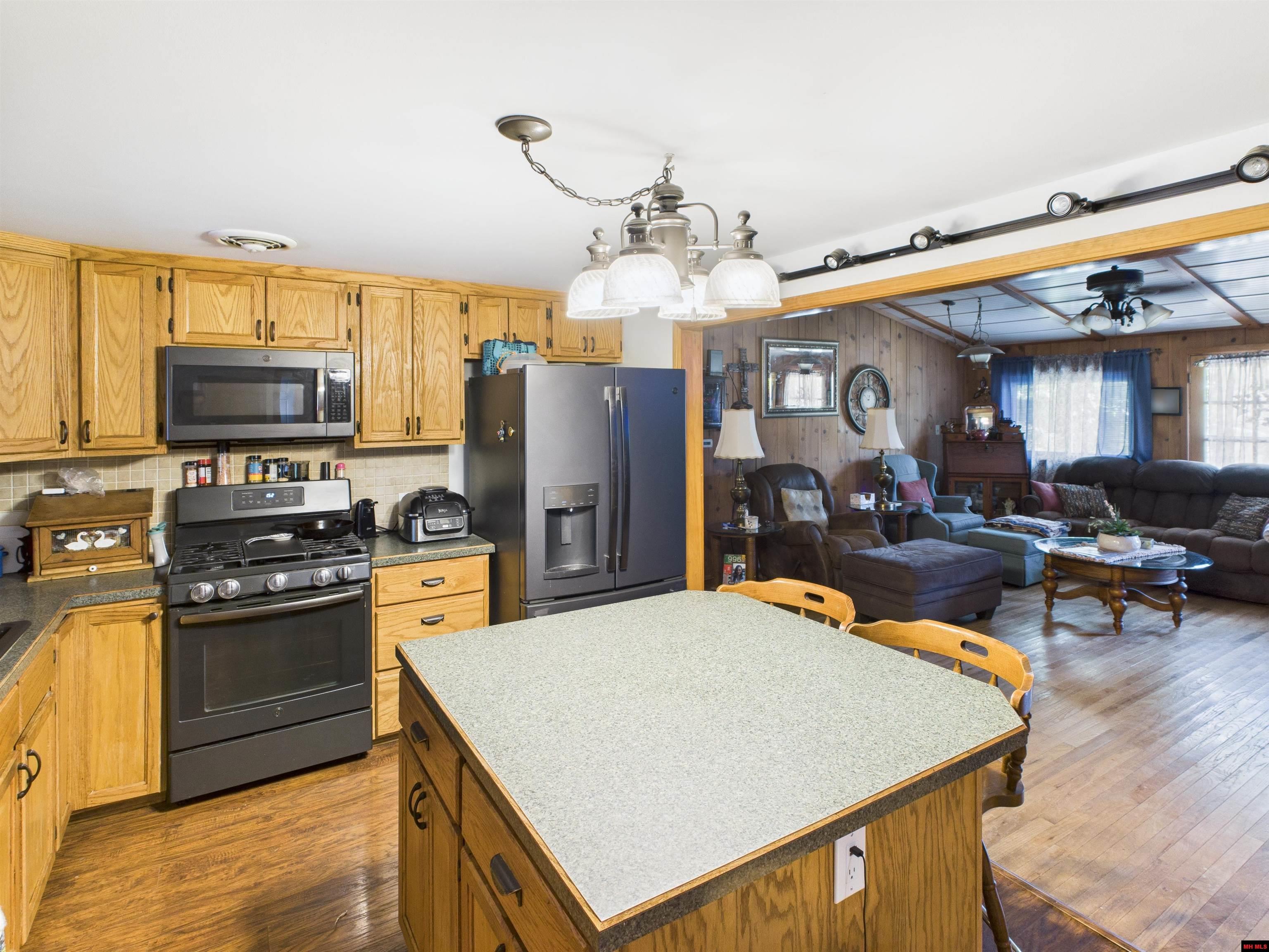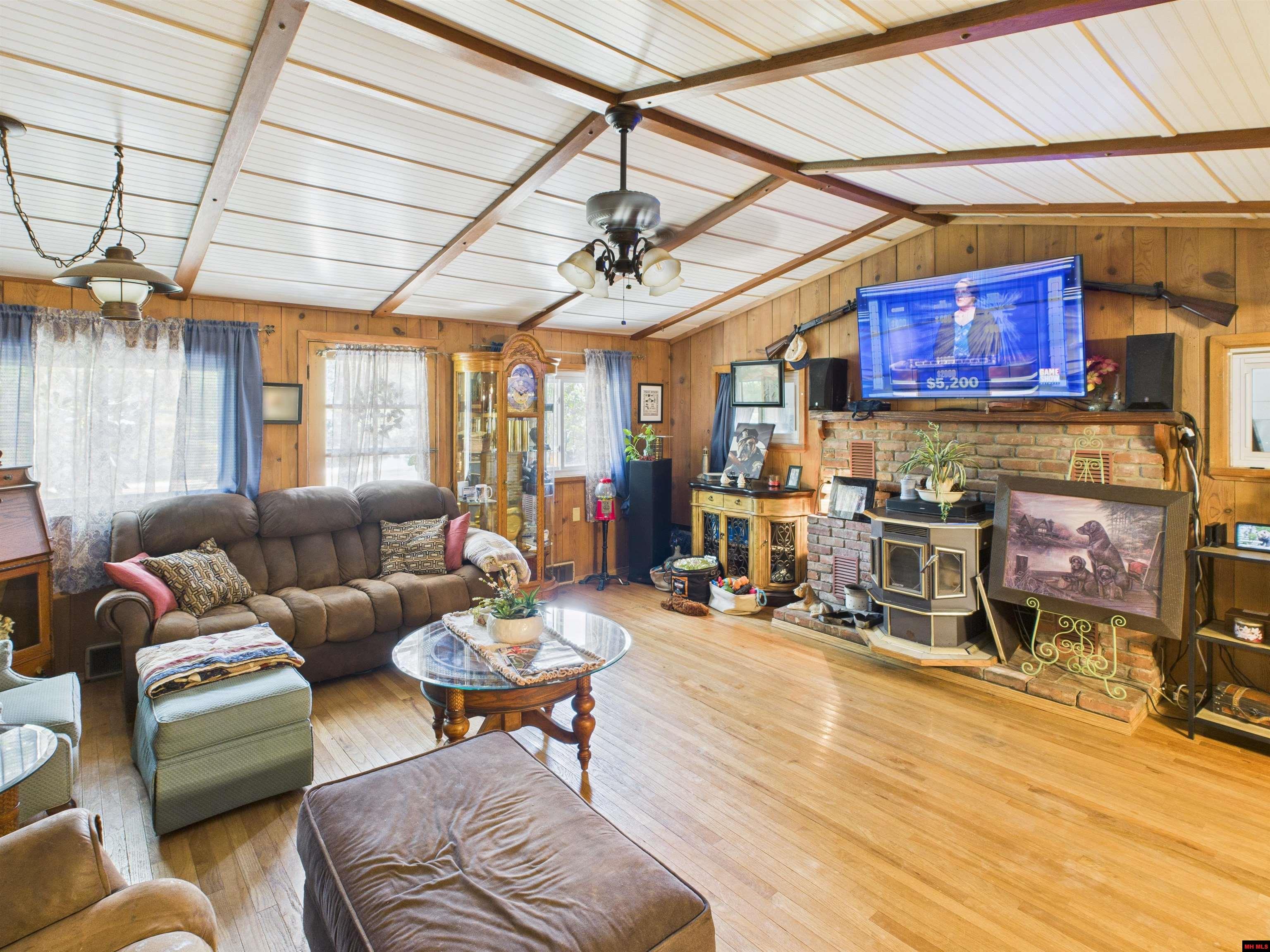 This 2,100+ sq ft lake-area property offers a 3 BR, 2 BA home on a level .76 ac m/l lot, bordering Corp land with seasonal views of Bull Shoals Lake. Located just minutes from both river & lake access, it’s the perfect blend of comfort and convenience. Inside you’ll find beautiful real wood floors and a living room with cathedral ceilings, exposed wooden beams, and a brick fireplace featuring both a wood insert and a pellet stove. The open layout flows into a spacious kitchen with custom cabinetry, new appliances, an island, and a dining room/sun porch that leads to the deck. The split floor plan offers flexibility, currently arranged with mother-in-law quarters that include a large family room and updated bathroom. A pantry, 26’x10’ deck, and oversized 32’x36’ attached garage provide plenty of storage and functionality. Practical upgrades make this home move-in ready: a 200-amp whole-house generator, updated plumbing and electrical, windows replaced in 2008, & a new roof in 2017.