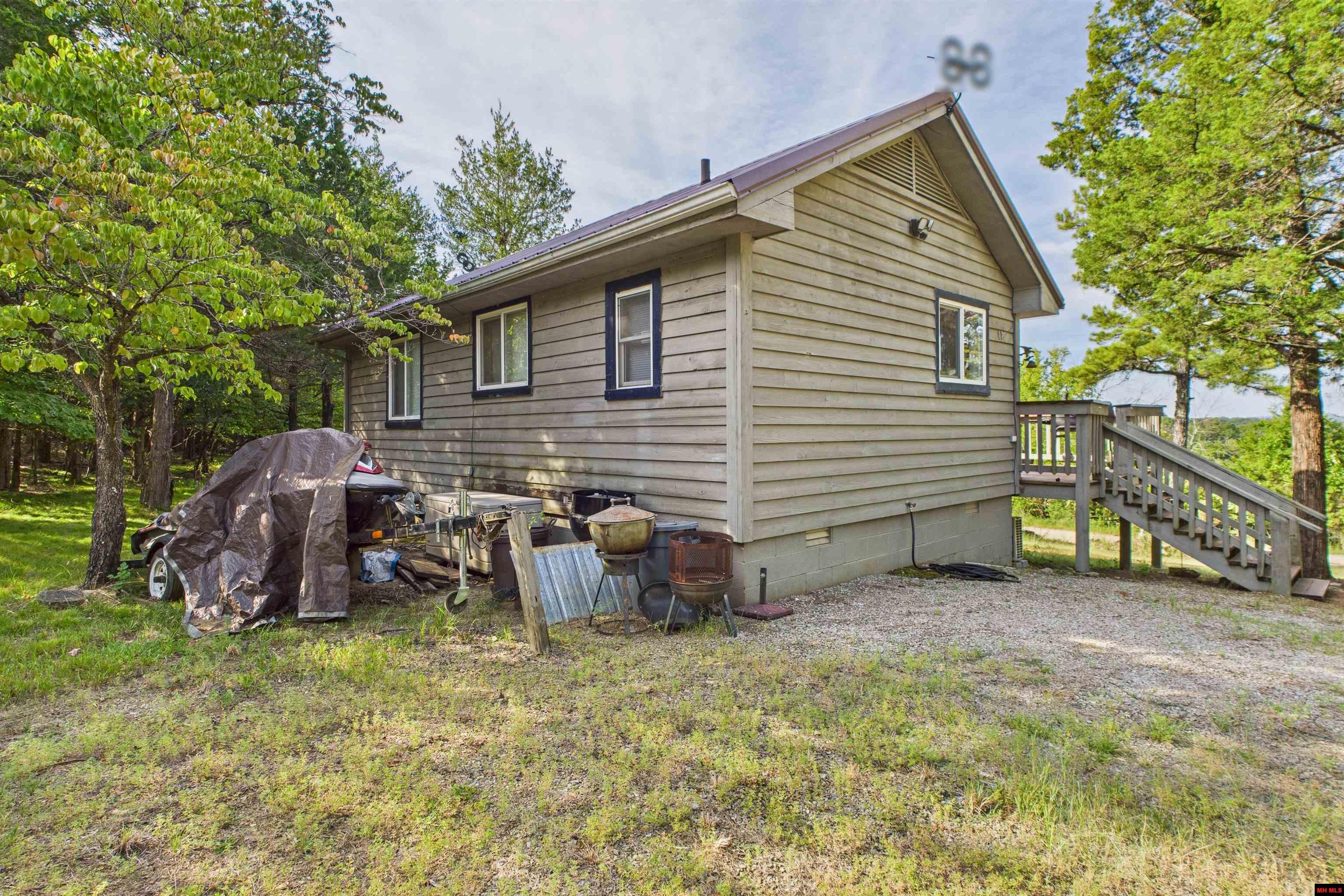 Looking for a cabin on Bull Shoals Lake? This is it! This 2 bedroom, 1 bath 558 sq. ft. cabin sits on 1.55 acres m/l and is just 4 miles to Oakland marina. You will love the atmosphere the rustic wood paneling and pine flooring create in this lake getaway. Other features include an awesome screened porch, a large deck with lake views for entertaining, Metal roof, updated windows, mini split HVAC, and woodstove. Just bring your flip flops and swimsuit because this cabin even comes furnished! Don't miss out on the opportunity to own this rare gem. 2008 Voyager pontoon boat, motor and trailer also available for an additional $5,000.