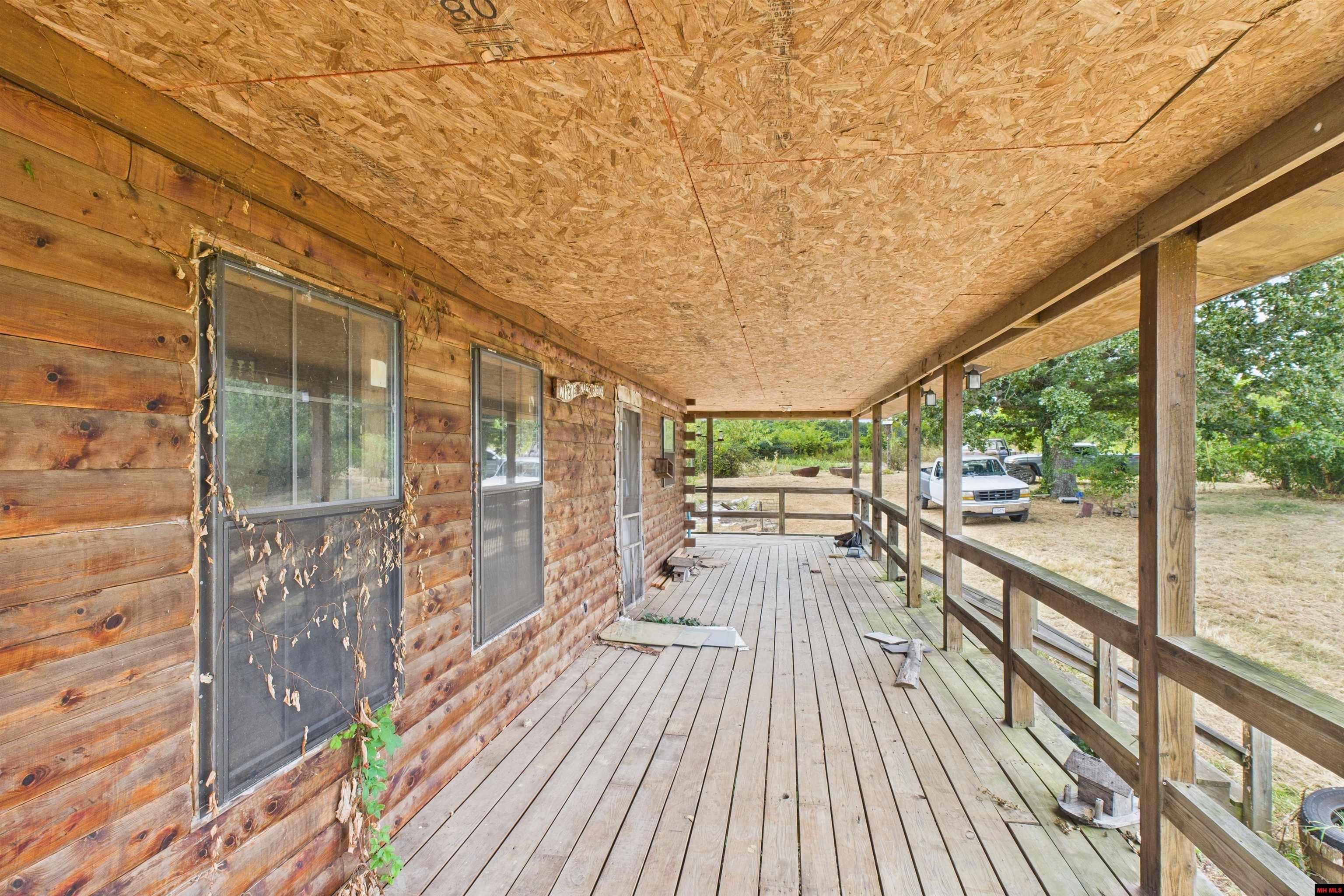 Log Cabin Charm with Farm Land Views! This rustic log cabin offers the perfect blend of privacy and country living, surrounded by open farmland and breathtaking views. The property is fully perimeter fenced and features wide covered porches, perfect for relaxing and enjoying the peaceful setting. Inside, the home is ready for your finishing touches—giving you the opportunity to design and create your own dream home. Plus, it offers a full walk-out basement, providing extra space for living and storage or storm shelter and work shop area. Property has nice garden area, mature fruit trees, and a corral for working livestock.