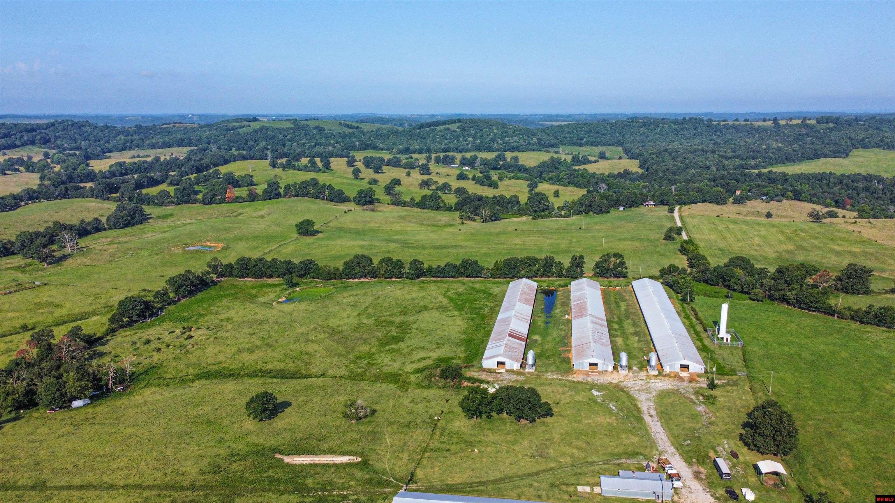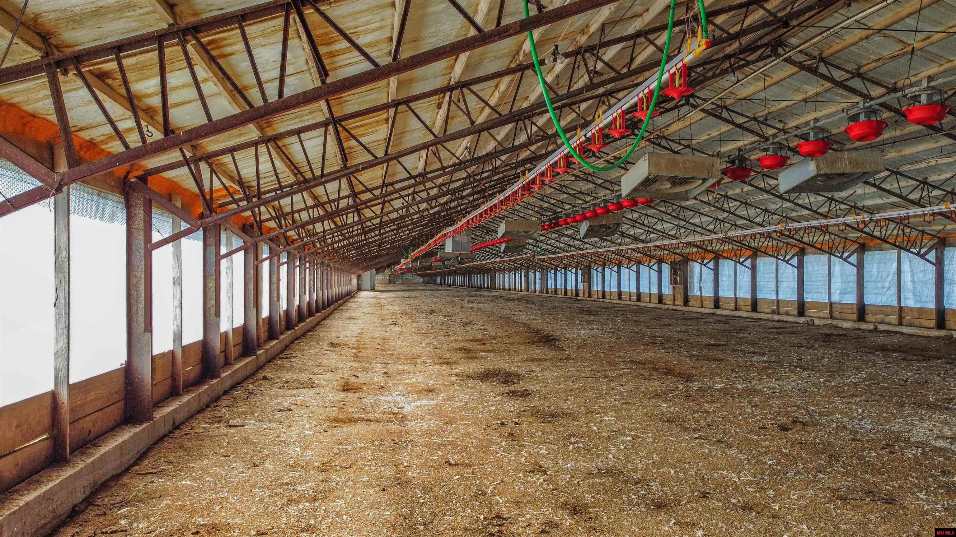 Marion county farm previously ran as a turkey farm could be updated to still run turkeys or chickens. Five barns totaling 120,000 sq ft sitting on 30 pasture acres m/l with a pond all fenced and cross fenced. There is one 720 x 50 footing that could have another barn. Workshop with 3 phase power and bathroom along with 5 - 1000 gallon water tanks. Both city water and a well (40 gpm). Houses are heated with propane. Hook ups for a home or trailer as a residence on site. Separate carport for equipment and a large stacking shed for hay or other storage.