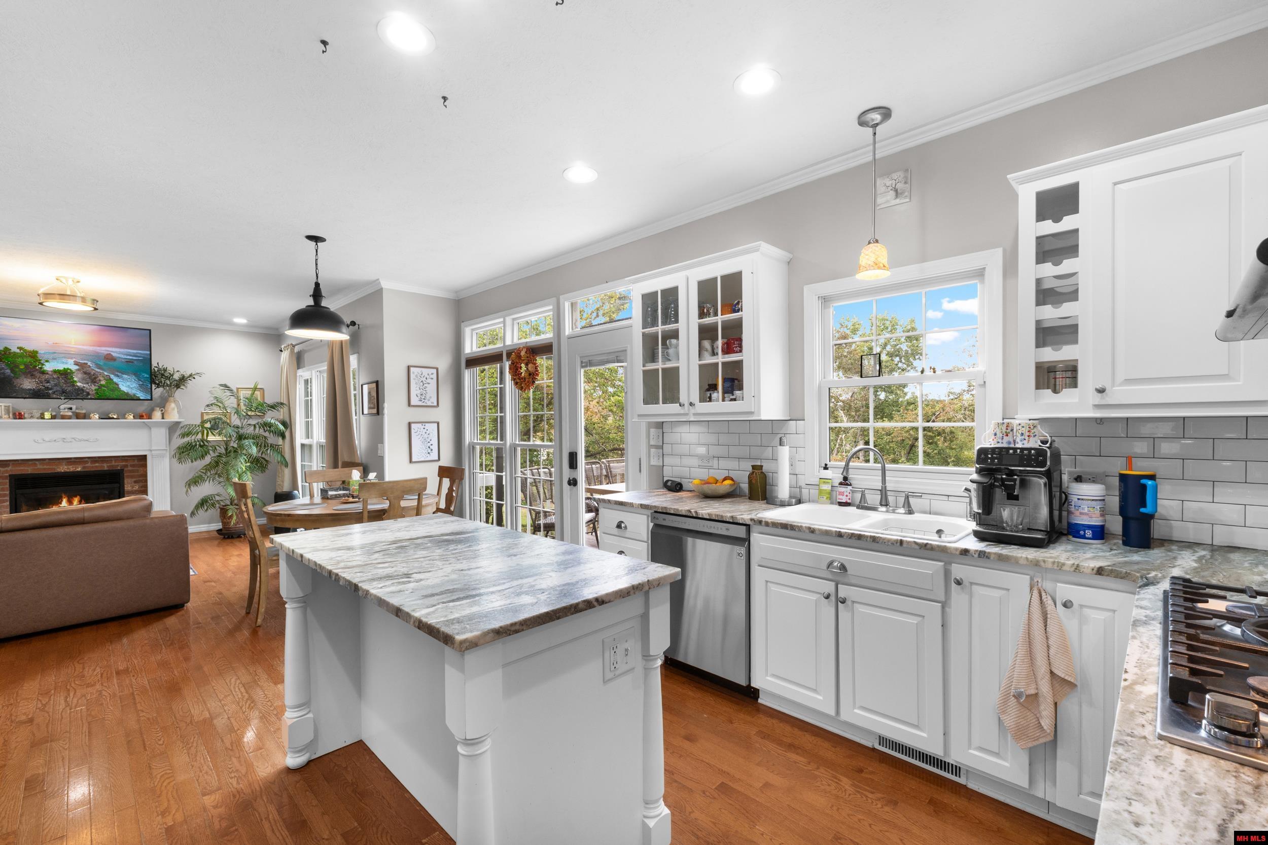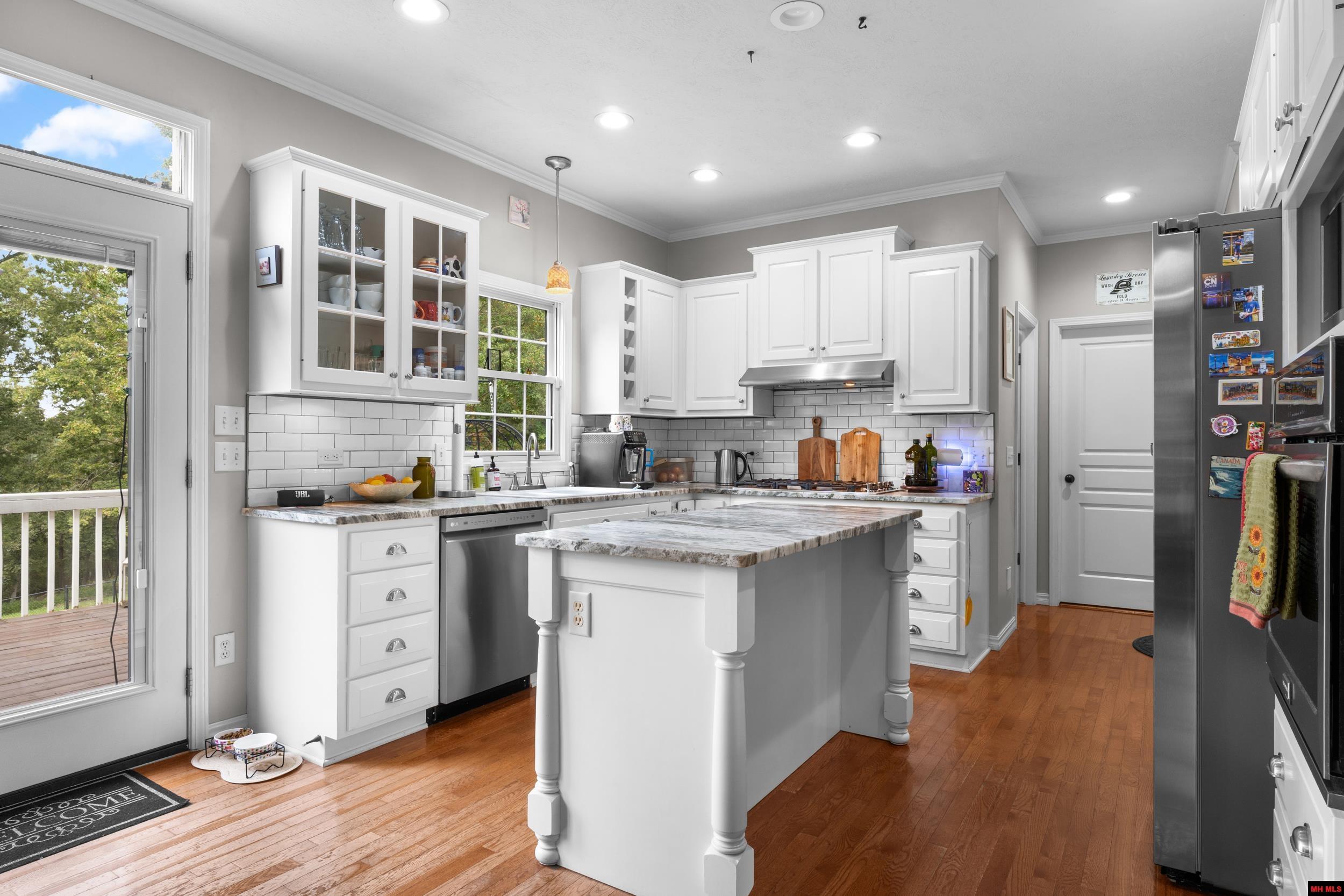 Experience refined lake living in this estate-style custom home, thoughtfully designed across three levels of elegant living space. Nestled on 2.47 acres m/l bordering the government strip, this 4-bedroom, 3.5-bath residence with a dedicated office offers serene winter lake views and a gentle, usable slope. A matching detached garage/shop provides guest house potential, complemented by an additional 2-bay shop for ample storage. Inside, you’ll find timeless craftsmanship—hardwood floors, a gourmet kitchen with granite surfaces, gas-log fireplace, and central vacuum system—creating a perfect blend of comfort and sophistication.