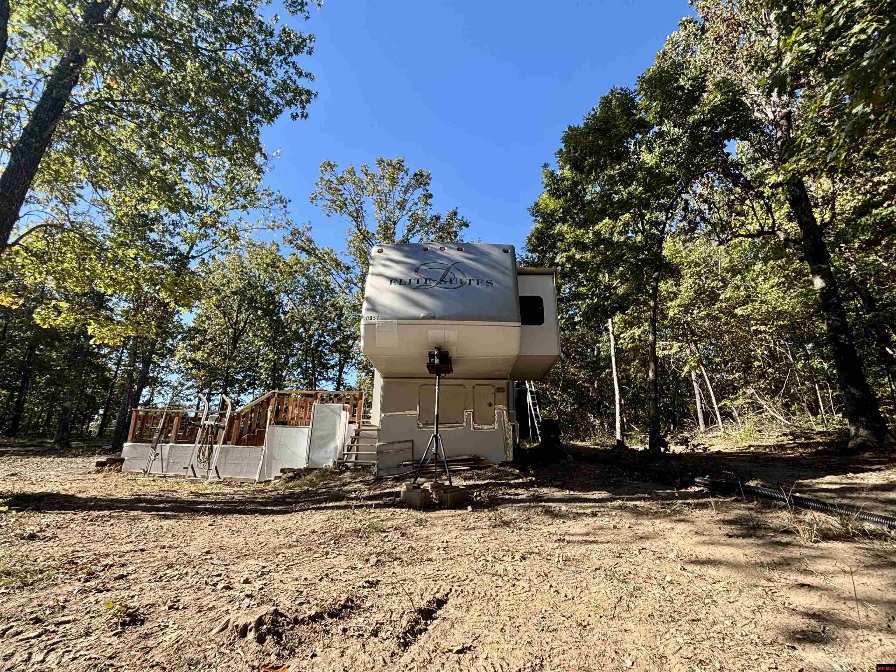 Just five miles from the heart of Yellville, this 5.63 acre m/l property offers the perfect mix of privacy & convenience with no restrictions. Set among hardwoods—mostly oak—the land is cleared around the living area for comfort & seclusion. The 2006 Elite Supreme RV blends style & function with granite countertops, island kitchen, open living area, king-size bed, electric fireplace & a mini-split for efficient heating & cooling. Water Wagon delivers water into a 3,000-gallon potable-water cistern & an owned propane tank, plus gravel drive adds to the easy living. A successful soil morphology test for a 3-bedroom home gives you the flexibility to build when ready. Enjoy the peace of off-grid living just minutes from town & Bull Shoals Lake.