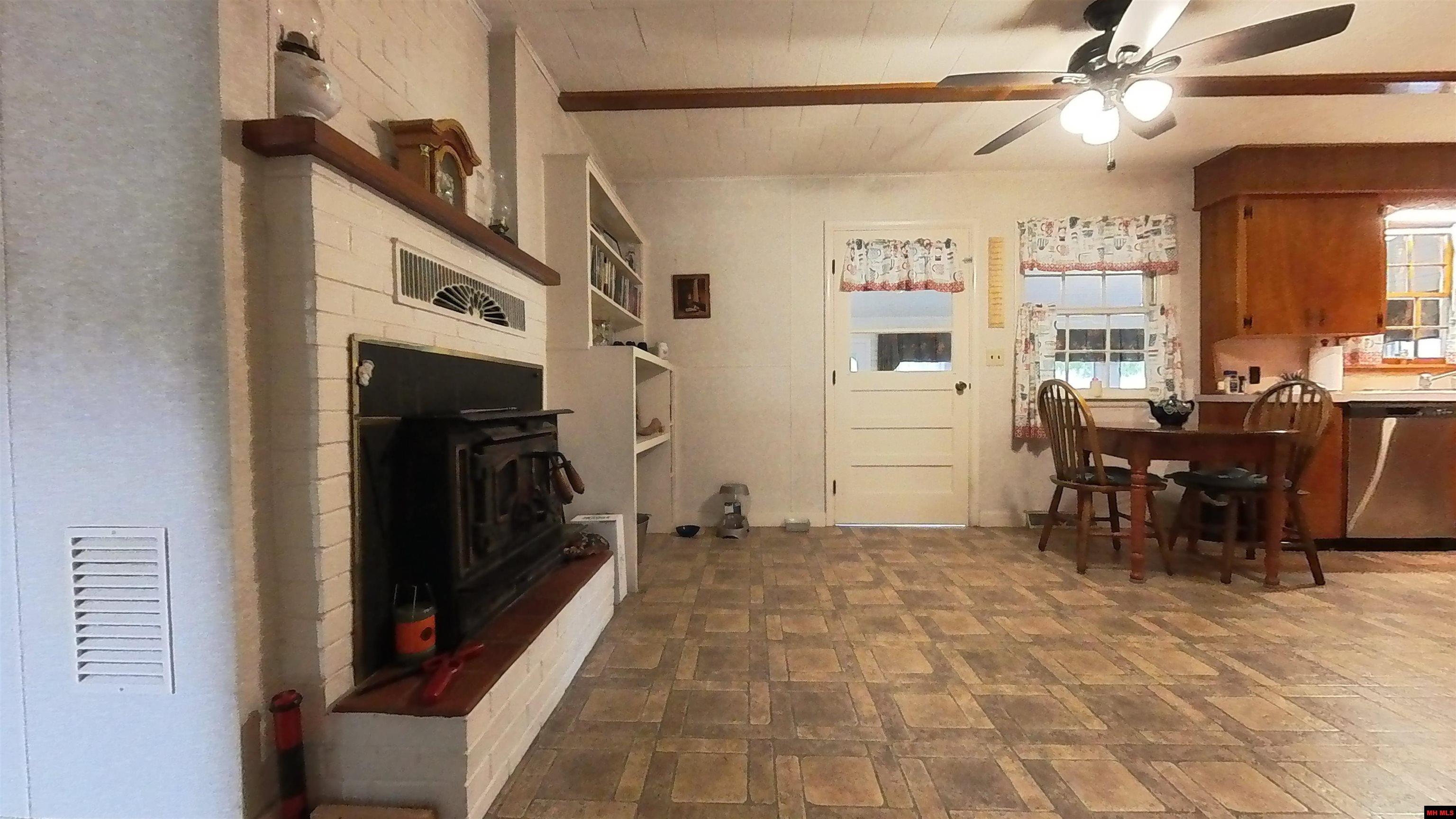 Updated home, sits back off the highway. Formal living room and enclosed sunroom/family room. CH&A, Wood-burning fireplace and ventless gas heat. Updated Appliances. Main Bedroom Primary. Large Bath, utility room w/sink. Large Eat-in Kitchen with wood-burning fireplace. Formal dining room. Upstairs has two bedrooms and one full bath. Large back yard, deck. Storage buildings and two separate garages. Plenty of room for the whole family.