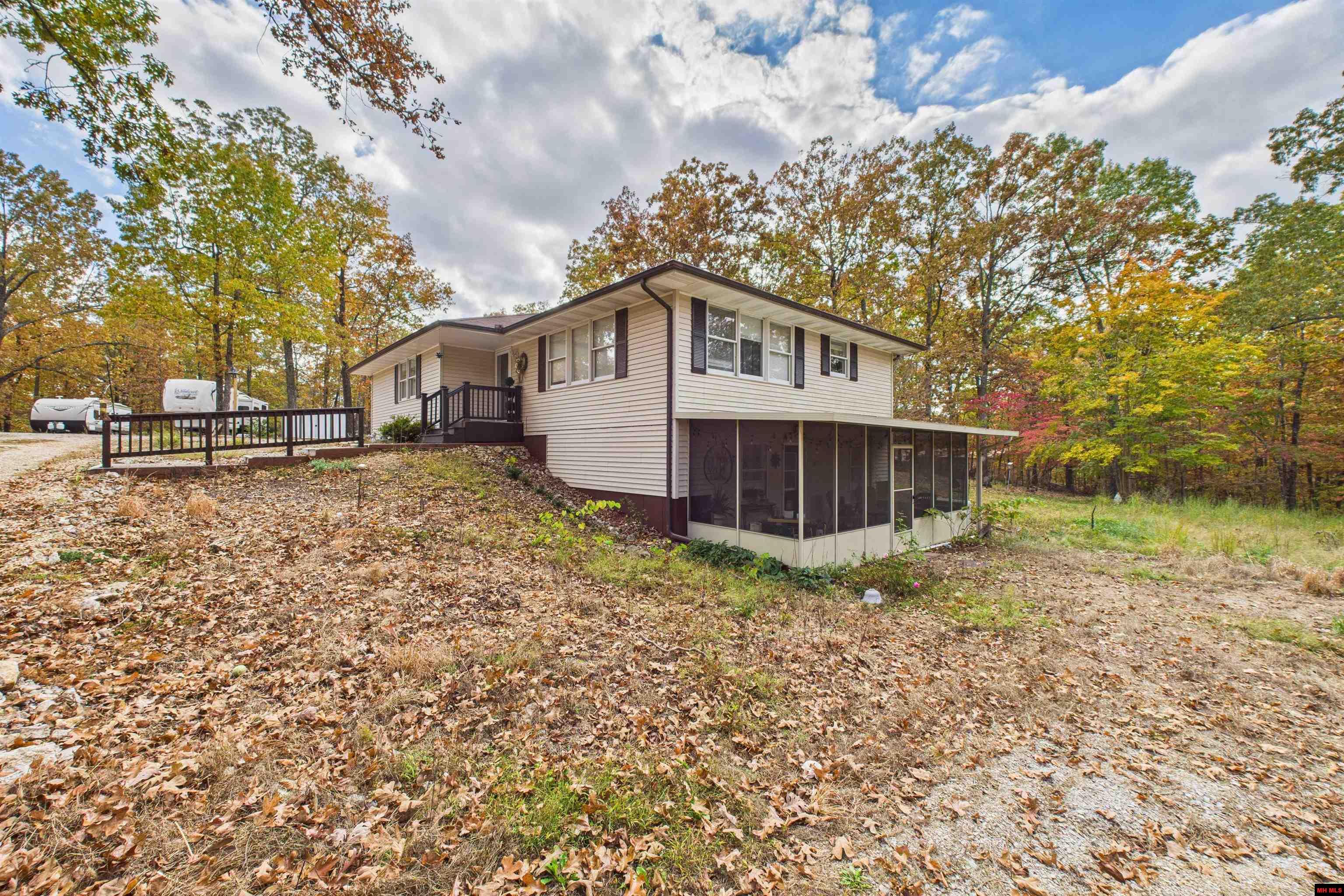 Peaceful Country Living Near Bull Shoals Lake & White River! This spacious 3-bedroom, 2.5-bath home offers 2,850 sq. ft. of comfortable living space on 3.02 serene acres m/l. The property includes a 2-car detached garage, carport, sheds, RV parking, and a whole-home generator for convenience and peace of mind. Enjoy the outdoors from the screened-in sunroom or the back deck—perfect for relaxing or entertaining. Inside, you’ll find stainless steel appliances, a kitchen with pantry, elegant paint colors, and a large primary bedroom with a walk-in closet. Additional features include a storage room, poured concrete foundation, circle driveway, and plenty of room to enjoy the quiet setting. Located just minutes from Bull Shoals Lake and the White River, this property offers the perfect blend of comfort, function, and location.