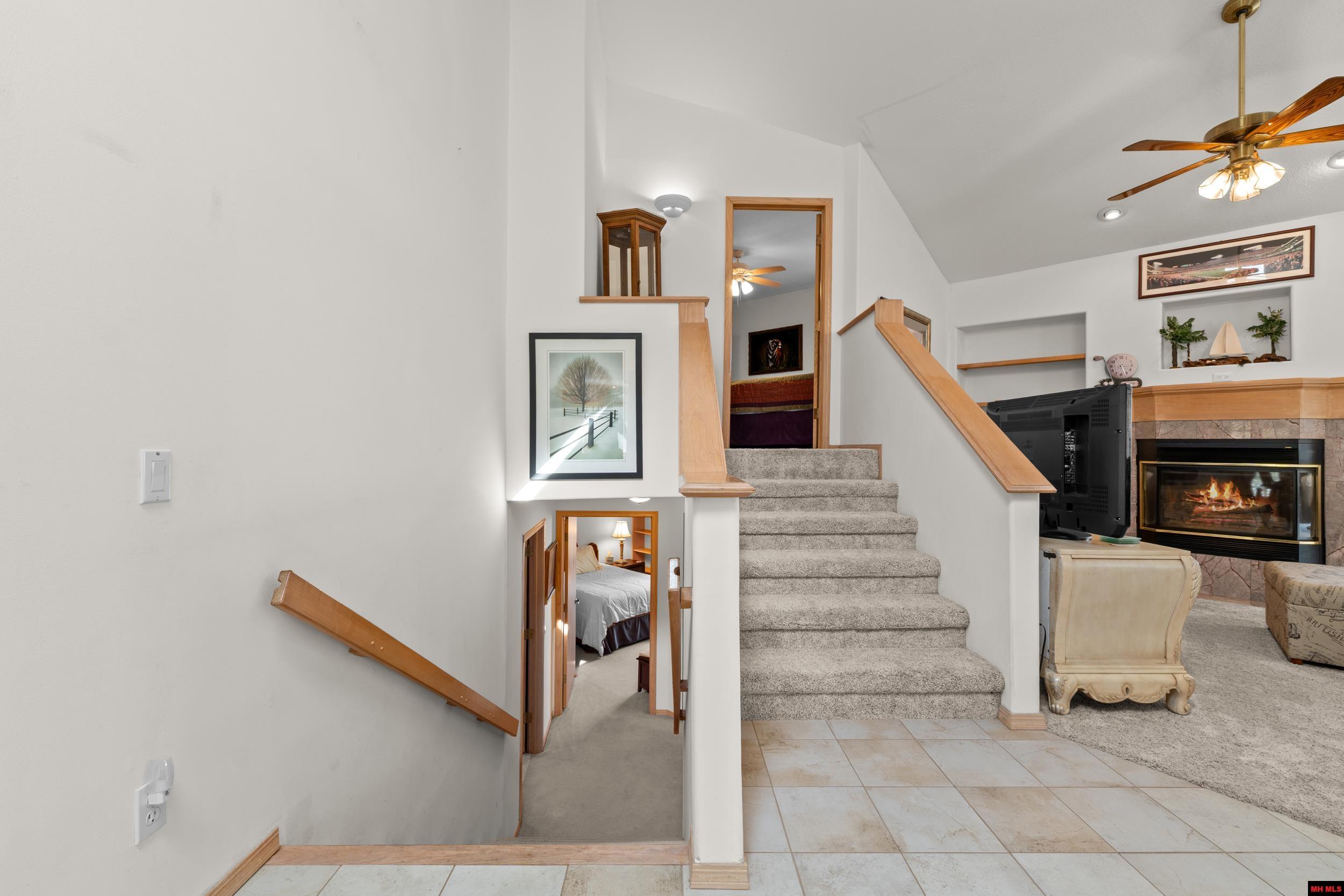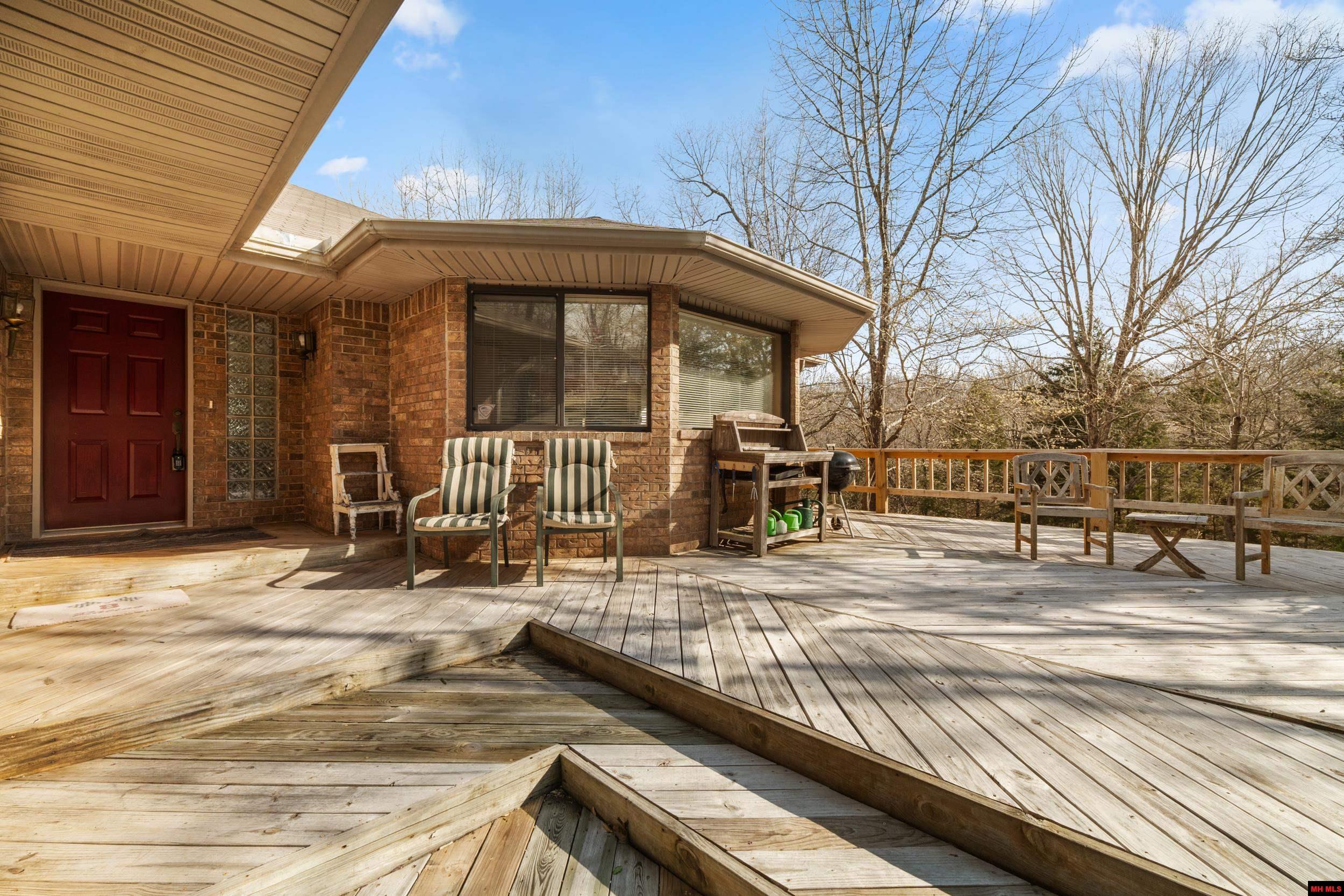 Enjoy breathtaking year-round views of Bull Shoals Lake from this spacious 4-bedroom, 3.5-bath home at the end of the cul-de-sac and situated on 5.35 acres bordering Corps of Engineers land in Bull Shoals, Arkansas. This well-maintained property offers a bright, open interior with vaulted ceilings, expansive windows, and abundant natural light throughout. The split-level floor plan features two primary suites, providing flexibility for guests or multi-generational living. The kitchen and living areas are designed for both everyday comfort and entertaining, complemented by two gas fireplaces for added warmth and charm. The primary suite includes a unique sunken hot tub, creating a private retreat. Outside, enjoy a custom chipping green, 3-car garage, and ample space for lake toys and outdoor recreation. Located just minutes from Bull Shoals Dam and the world-renowned White River, this property offers the perfect blend of privacy, convenience, and Ozark lake living.
