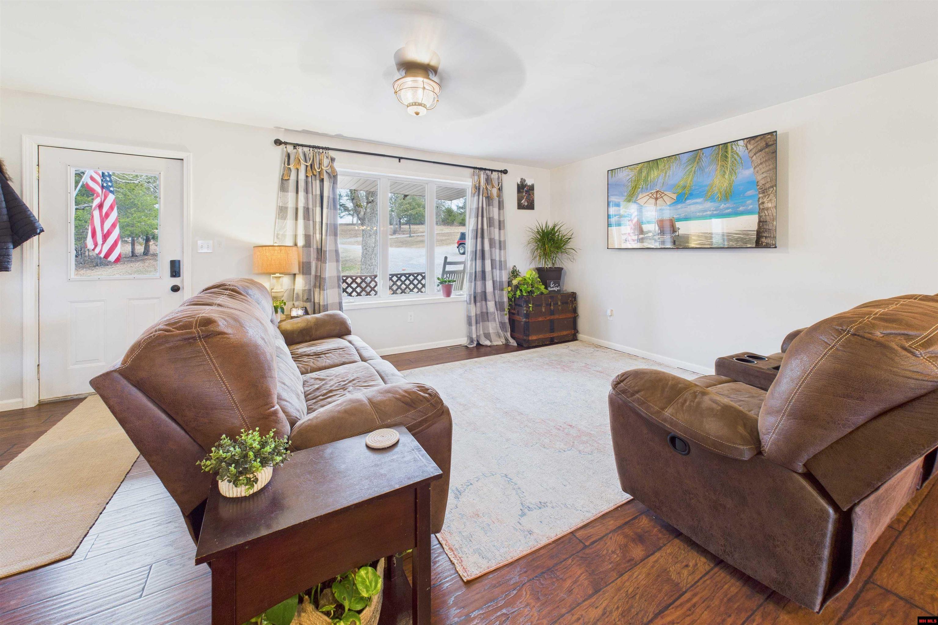 Fully remodeled 3 bedroom, 2 bathroom home on 15.60 M/L acres. Home features vinyl siding, metal roof, and a 2-car attached garage. Interior updates include granite countertops, laminated flooring throughout, and a custom tile walk-in shower in the primary bedroom. Property also offers a partially finished walk-out basement providing additional usable space. Improvements include a 30x50 shop building and a 25x30 Quonset hut, ideal for storage, equipment, or hobbies. Located just a few miles from Pontiac Boat Dock and Bull Shoals Lake, offering easy access to boating, fishing, and outdoor recreation. Ample acreage provides privacy and room to enjoy the outdoors.