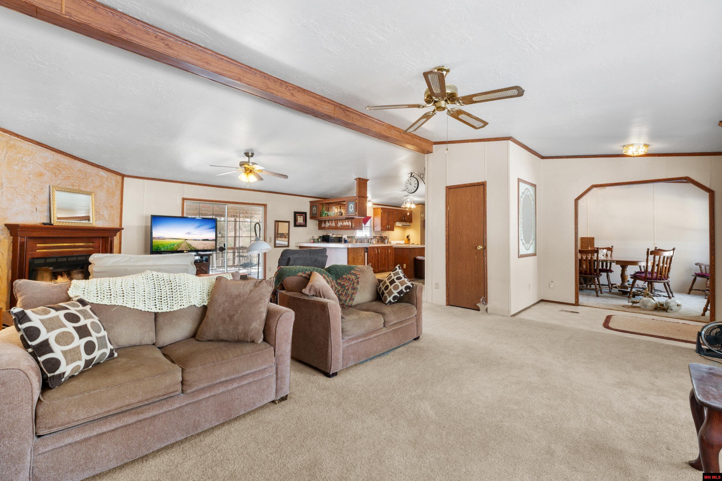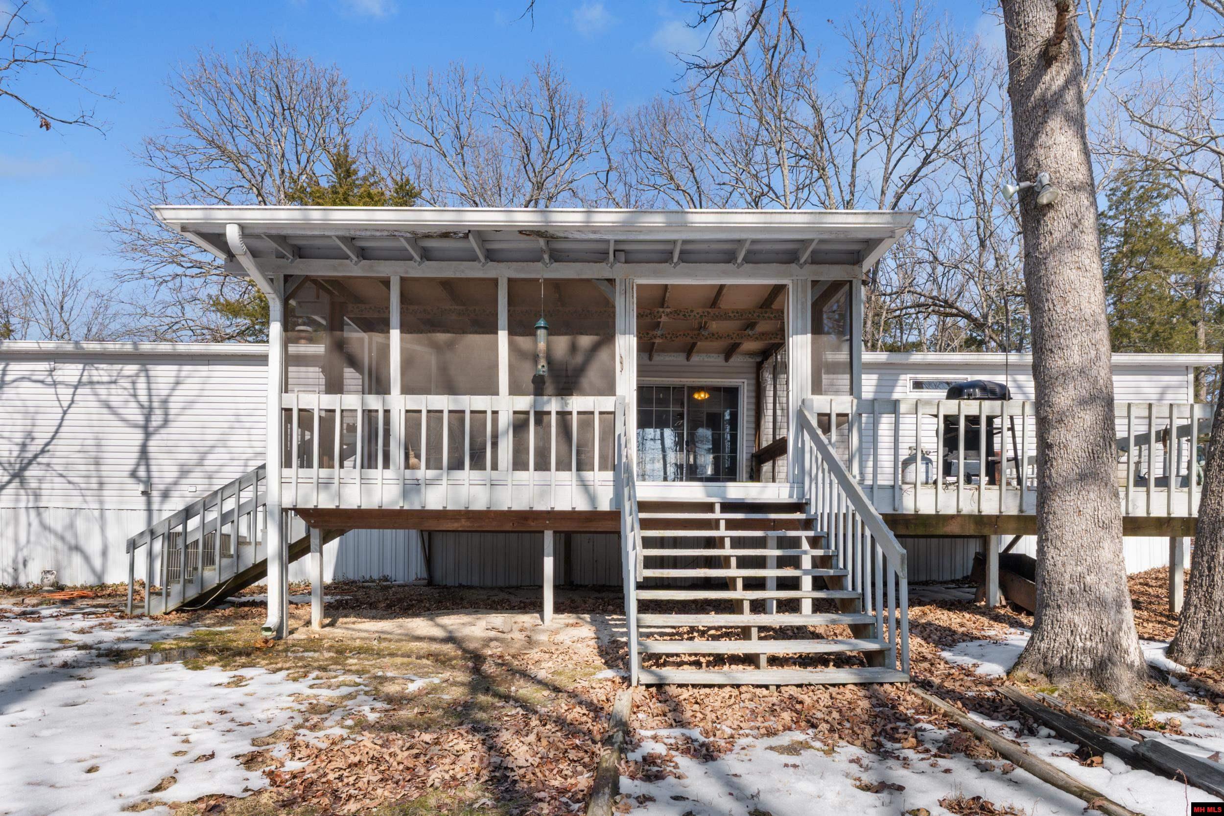 This fully furnished 3-bedroom, 2-bath home sits on over an acre and features a split-bedroom floor plan with an oversized living room and cozy fireplace. The large kitchen and separate dining room offer great space for everyday living or entertaining. Enjoy outdoor living on the covered back deck plus an additional uncovered area, overlooking a wooded backyard with frequent wildlife. The property includes a level front yard, wrap-around driveway, and a detached 2-car shop building, all just minutes from Walmart and only 5 minutes from the Buzzard Roost boat dock.