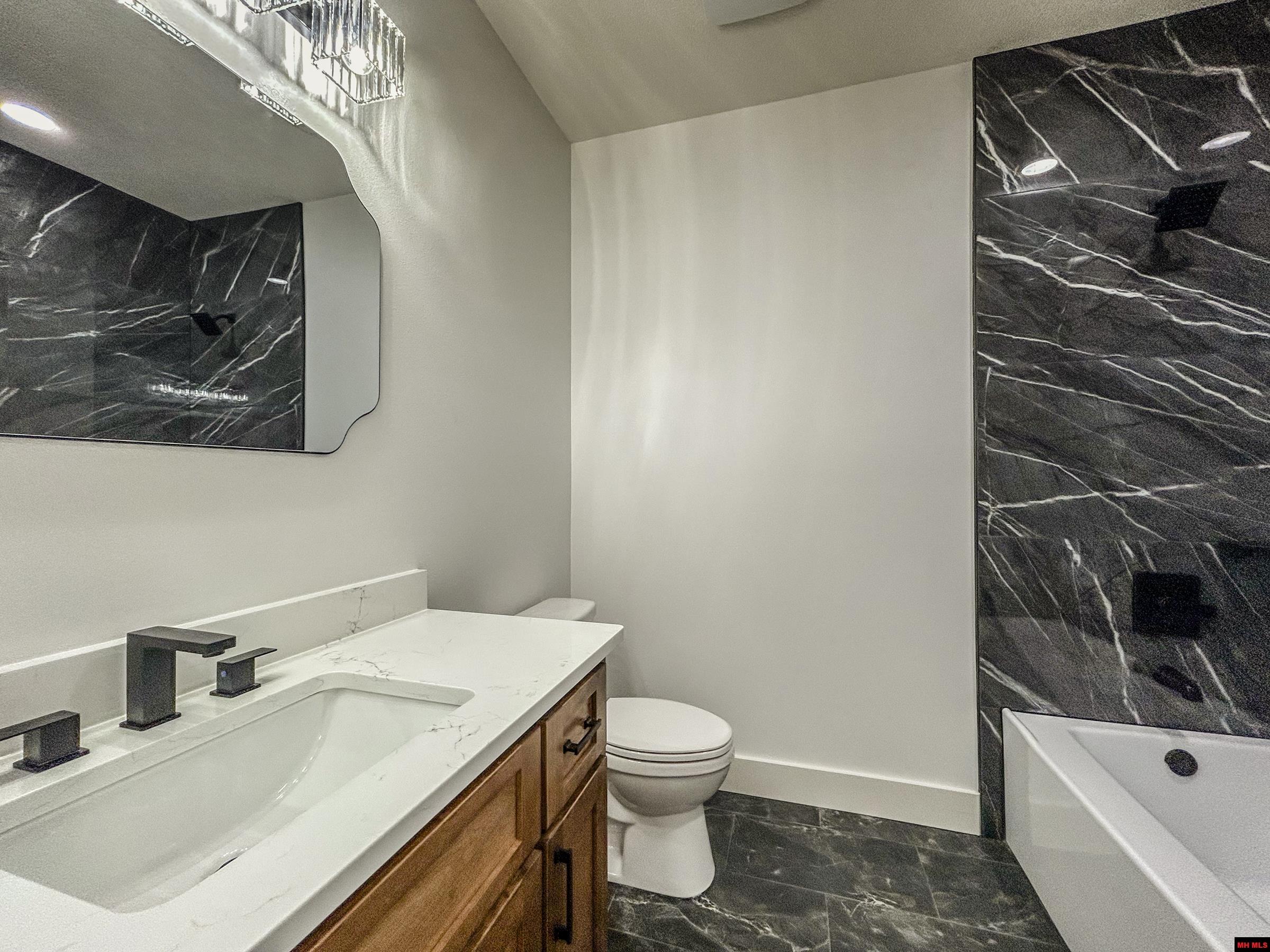 Say hello to this new construction home located in one of Mtn Home’s prestigious premier subdivisions -The Summit! This modern residence showcases a striking dark exterior with elegant stone accents, creating remarkable curb appeal. Step inside to an open living area featuring a fireplace, high ceilings, and abundant natural light The kitchen boasts custom cabinetry, sleek quartz countertops, stainless appliances, a spacious island, and a highly desirable hidden walk-in pantry. A covered patio offers lovely views, perfect for entertaining. The primary suite features heated bathroom floors, a tiled custom shower, soaking tub, walk-in closet, and convenient laundry connectivity. Buyers will appreciate the thoughtfully designed, split-bedroom floor plan. The bonus room provides flexible living options plus a full bathroom upstairs. Additional highlights include an energy-efficient tankless water heater, a buried propane tank, underground utilities, and high-speed fiber internet.