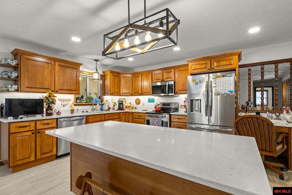 Some homes are made for life. It will impress you from the street, but even more the minute you come inside. Wonderful open floor plan for formal and informal dining and amazing maple kitchen with perfect center island, but not too open, the quiet living room centers around the warmth of the perfect gas fireplace for chilly nights or private conversations. Expanse of sunroom glass so plants and people can feel that morning sun. Nicely located half bath/laundry just off of the extra deep finished garage. Handicap ramp provides access for anyone. Large bright bedrooms. Jetted tub. Lower level walk out offers a second complete living space. Family room, kitchen, bath, storage, and more garage space! 3 cars comfortably fit in the lower level garage and 5 possible! Incredible storage. Room for any hobby you can imagine. Plus Detached garage/shop for more cars, toys, boats. The property is Impeccably kept. Paved driveways, all city utilities in one of Mountain Homes finest neighborhoods.