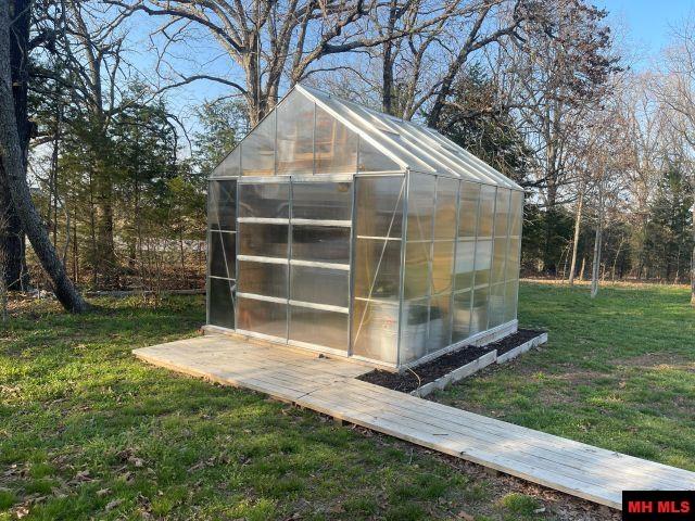 This 232 sq ft cabin is situated on 4.9 acres m/l with a gentle grade. Inside is a Murphy bed, kitchenette, washer/dryer hookups, shower and toilet. Built-in storage throughout. Outside is a full RV hookup for water, electric, and sewer. Sewer is a five-years-old 1,000-gal septic system. Outbuildings include a 10 x 12 greenhouse, a new, wired 10 x 12 storage building, and a 10 x 16 shed with a 10 x 4 lean-to for additional storage. There is also a stocked pond with a fishing deck. Water is on Pyatt Rural Water System. Perfect as a minimalist home, weekend getaway or a great backdrop for your homestead dreams.