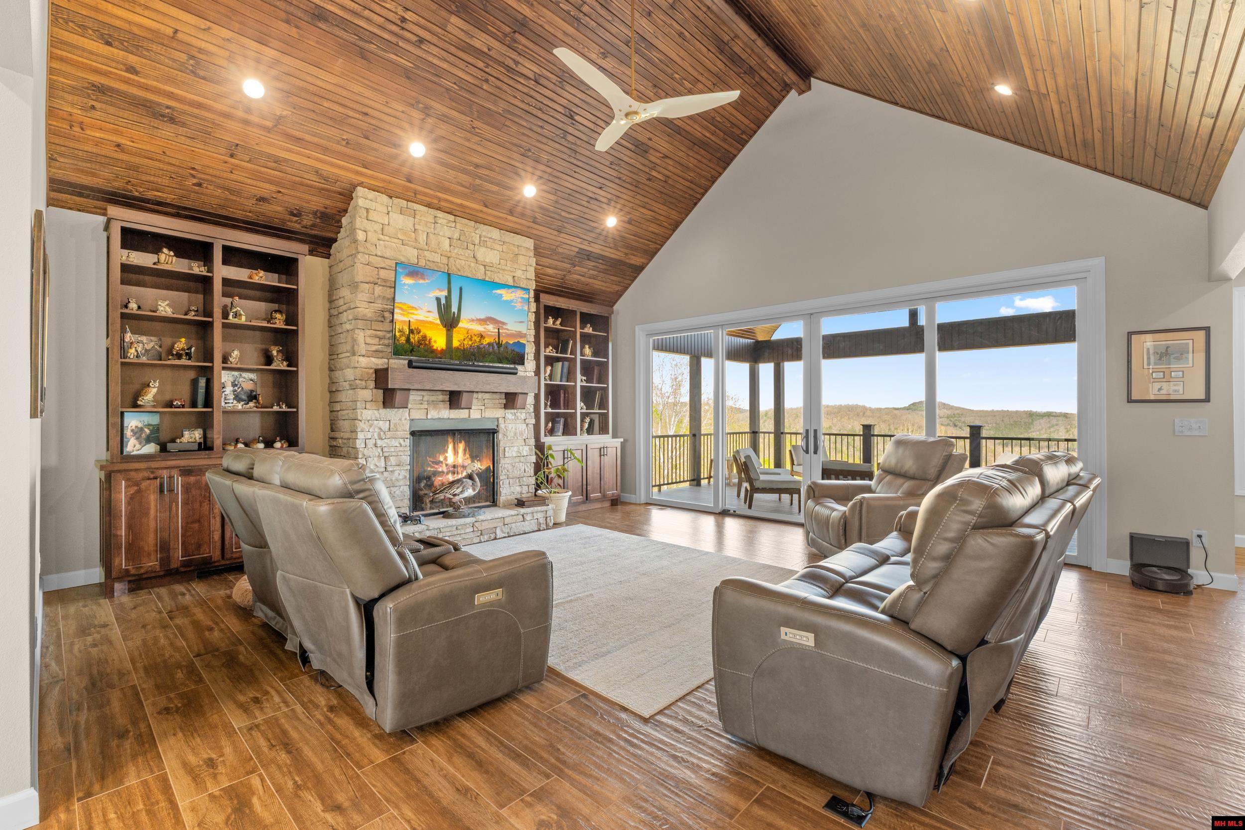 A perfect blend of luxury, comfort and beautiful views. Experience modern living in this two-year-old custom-built home. This home features 3 bedrooms, 3.5 bathrooms, office, and a large hobby room that is ideal for both work and relaxation. The open concept layout creates an inviting space for entertaining and breathtaking views of Norfork Lake, Dam, and Norfork River. A chefs luxury kitchen offers Café appliances, custom knotty alder cabinetry, and elegant Cambria quartz countertops. Enjoy the modern convenience of a smart home system, security cameras and real time notifications. Additional features include three car garage, porcelain tile flooring upstairs, polished concrete downstairs, main level laundry room and all-in-one washer/dryer downstairs, underground utilities and a Generac Whole Home Generator. This beautiful property includes 33 acres m/l, ideal for hunting, hiking or enjoying nature with a creek that flows into Norfork River. This home is in a private neighborhood.