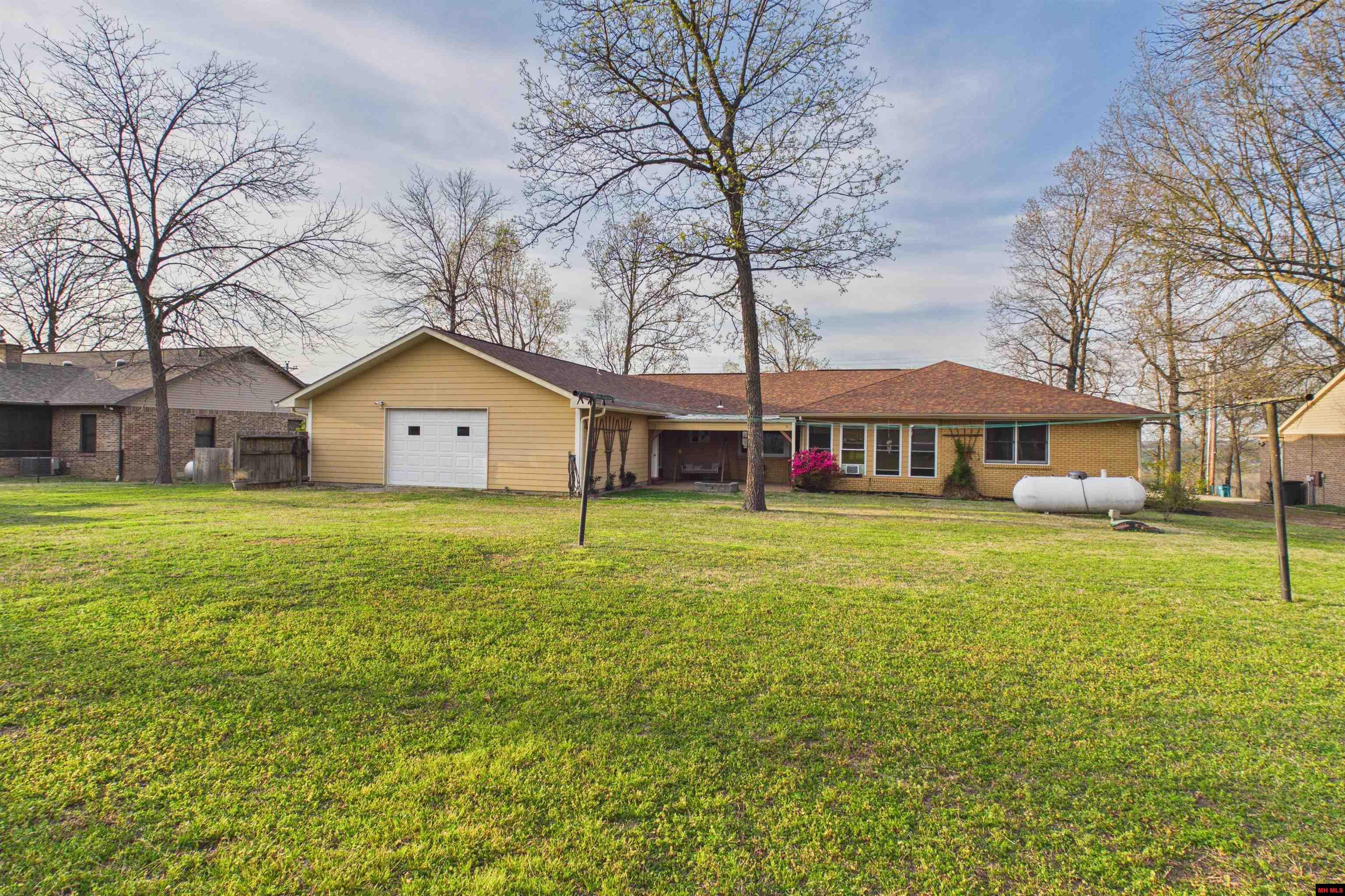 Mallard Point area Lake View Opportunity: This all-brick home blends comfort and versatility with 3 bedrooms and 2 1/2 baths, 2217 SQFT living space with over 4,400 sqft under roof, a spacious 3-car main garage plus a detached 32 x 24 back garage. Inside, you’ll enjoy both a welcoming living room and a cozy family room with fireplace, ideal for entertaining or relaxing evenings, covered back porch and sunroom! Tranquil lake views from the front of the home visible from living room. A coveted boat slip with a boat lift and tri-toon boat are included, YES THE BOAT IS INCLUDED!!! . The boat slip is a short golf-cart ride away, about 1 mile, adding effortless access to your water adventures. Backyard garden spot and extra covered storage complete this standout offering, perfect as a summer retreat or full-time residence in a highly sought-after Mallard Point area.